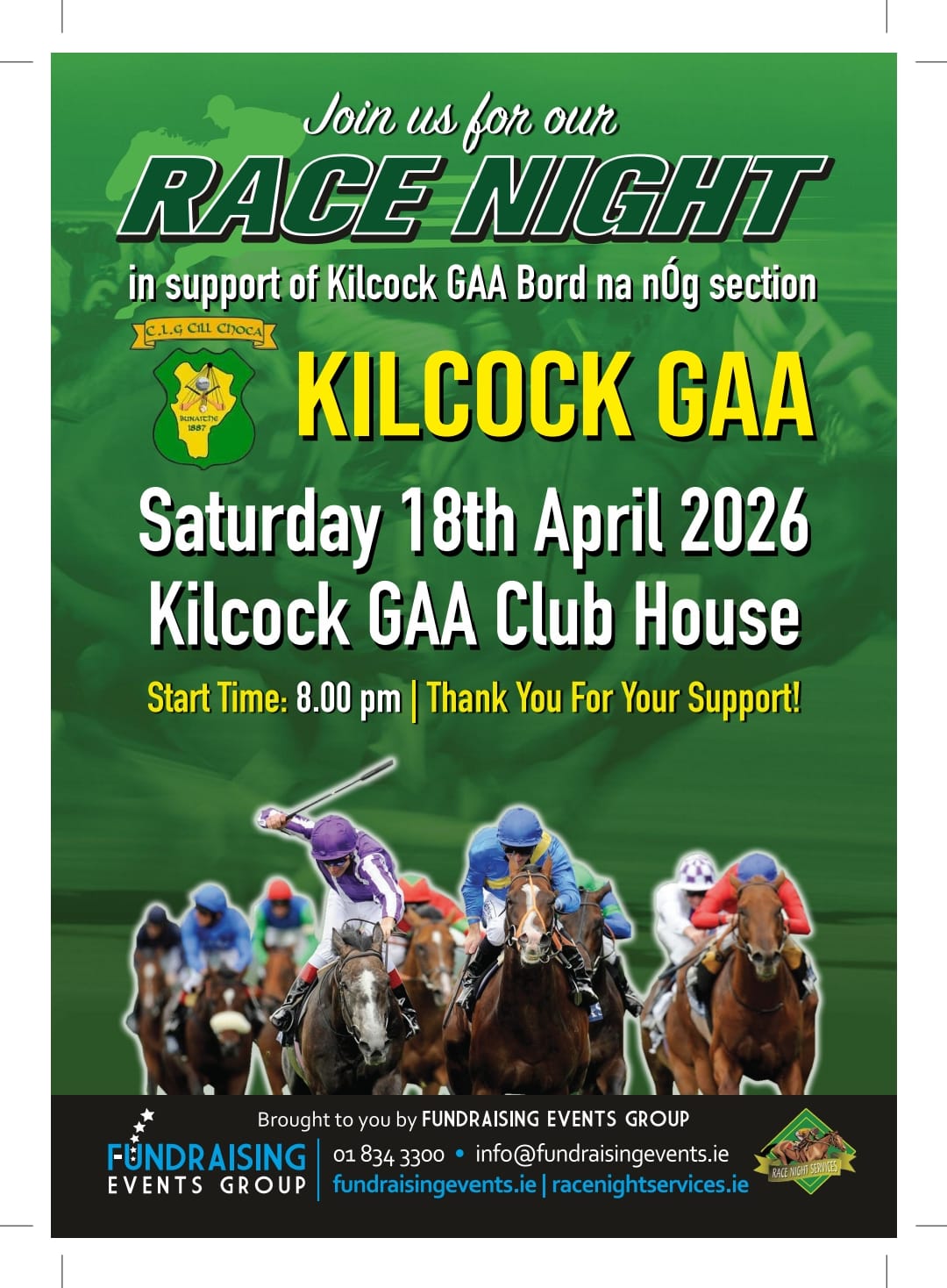 Bord na nOg Race Night Venue: Kilcock GAA Date: 18 Apr 2026 Premium Event Sponsor